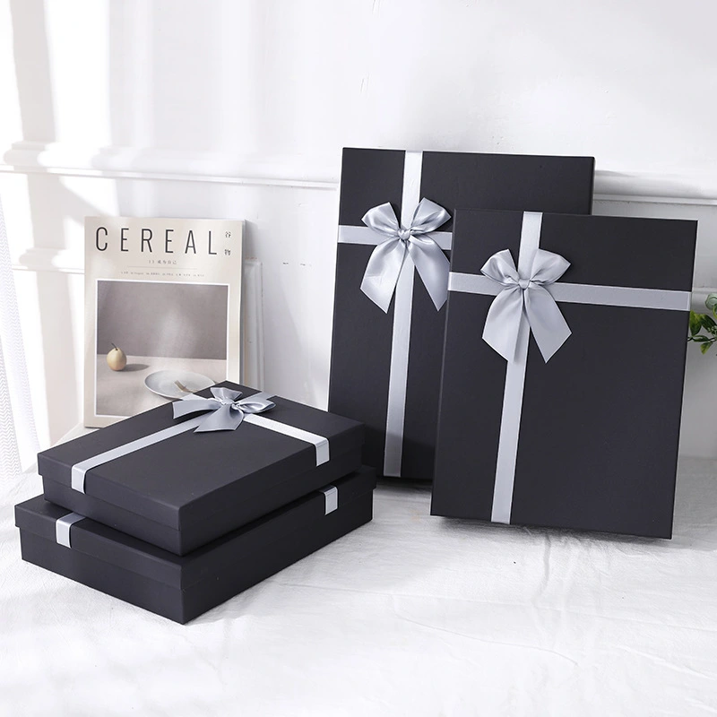 New Power의 뚜껑이 있는 직사각형 검정색 선물 상자는 의류, 의류 및 고급 선물 포장용으로 꼼꼼하게 제작되어 내구성, 우아함 및 기능성의 완벽한 균형을 제공합니다. 매우 두꺼운 견고한 회색 보드와 클래식한 뚜껑 및 베이스 구조로 제작된 이 상자는 세련된 프로필을 유지하면서 의류와 섬세한 품목을 안전하게 보호합니다. 고급스러운 실버 새틴 리본은 장식적인 세련미를 더할 뿐만 아니라 전체적인 개봉 경험을 향상시켜 단순한 포장을 기억에 남는 브랜드 문구로 바꿔줍니다.