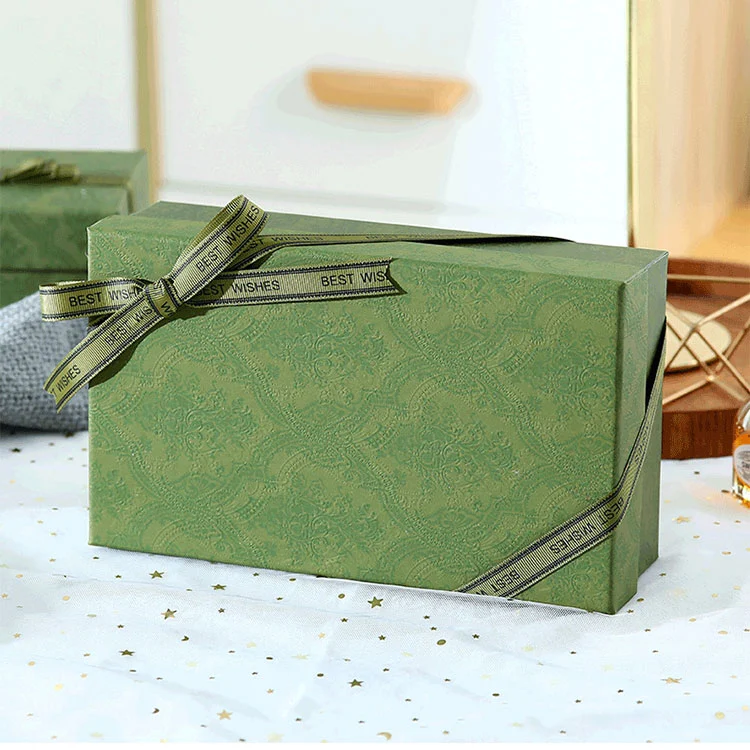 | 재료 구성: | 1200 단단한 회색 보드 딥 그린 질감의 특수 용지로 포장 새틴 리본 보우(연한 샴페인 색상, 사용자 정의 가능) 폼 삽입 지원 사용자 정의 |
